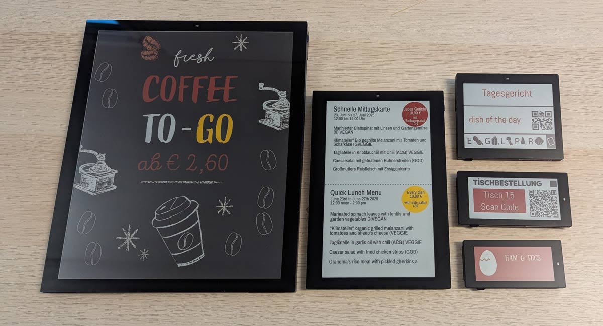 • Outdoor-Displays: Begrüßen Sie Gäste bereits vor dem Eingang oder informieren Sie über aktuelle Angebote.